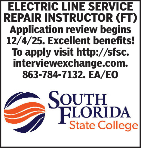 Nov 02, 2025. South Florida State College Electrician Jobs from Your Sun Jobs