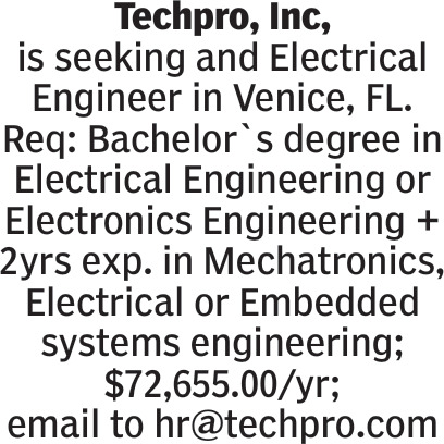 Feb 08, 2026. Techpro, Inc Engineering Jobs from Your Sun Jobs